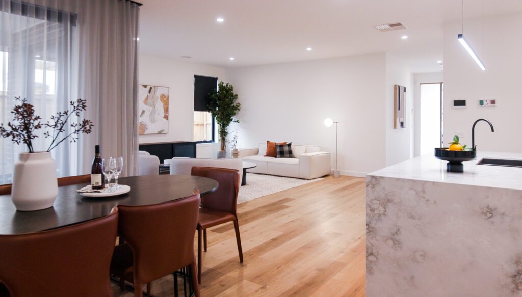 A client approached us with a vision to create a living space tailored to their family’s current and future lifestyle. We assembled a team of professionals to design a home that embodies comfort, health-conscious living, and a private outdoor retreat. Situated on a corner block, we leveraged the unique position of the site to craft a distinctive façade and striking external features, making the property a true statement piece. The open pergola, visible from afar, serves as a standout attraction. Every inclusion in the construction was meticulously reviewed and selected to align seamlessly with the client’s daily needs.